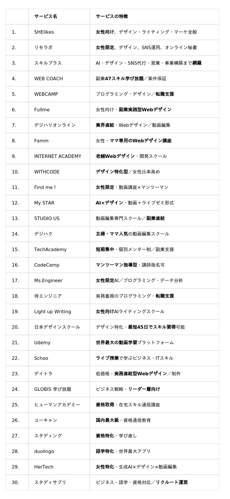◆女性のキャリア形成と副業支援に強いオンライン学習30サービス