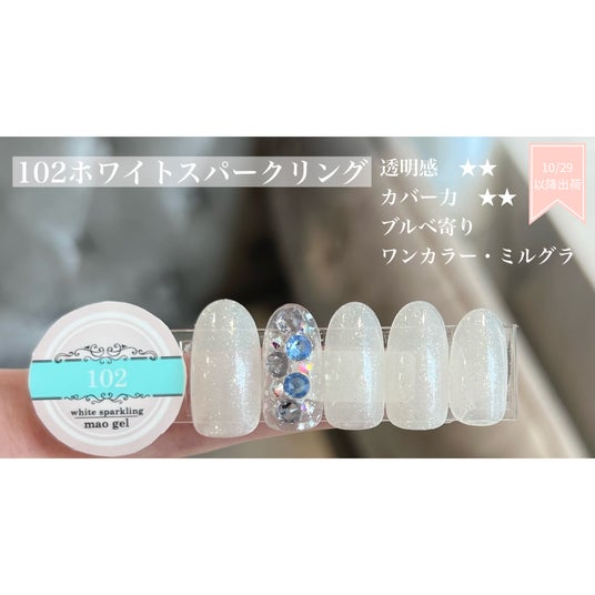 ホワイトラメがきらめく、透明感あふれるジェルカラー。