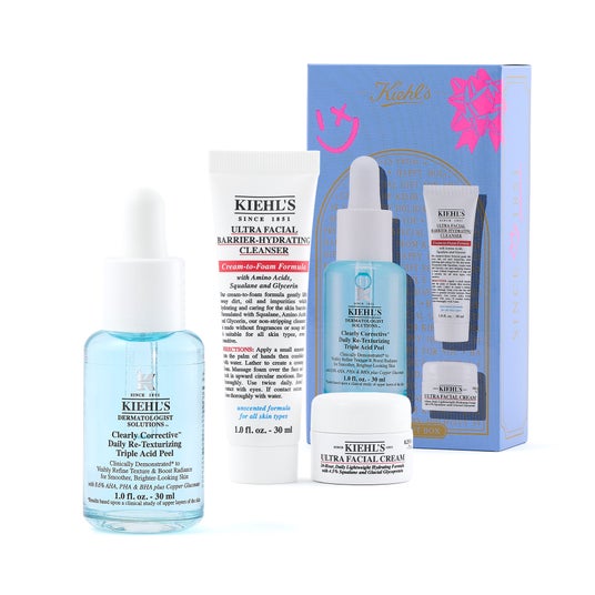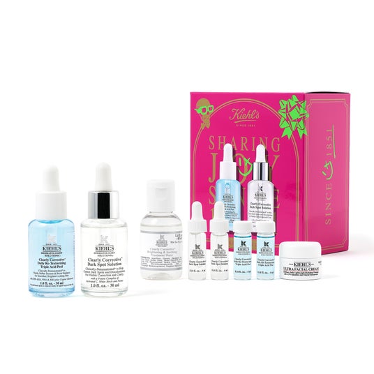キールズのトップセラー美容液2種からなる透明感が手に入る豪華コフレ。水色ピールセラム(導入美容液)で角質ケア、ロングセラーの透明美*白美容液で透明感を手に入れてつるすべ水光肌を手に入れて!