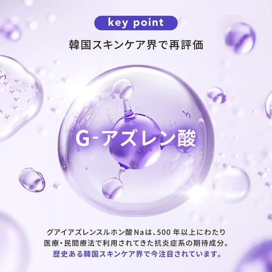 G-アズレン酸(グアイアズレンスルホン酸ナトリウム)は、1950年代頃からスキンケア製品に取り入れられてきた歴史ある成分です。特にヨーロッパでは古くからカミツレ(カモミール)などのハーブ由来成分として親しまれ、肌をすこやかに保つためのケアに用いられてきました。同じアズレン系の成分である「アズレンスルホン酸ナトリウム」は、医薬品や医薬部外品にも使用されることで知られていますが、G-アズレン酸はその中でも比較的マイルドな性質をもつ成分として、日常使いのスキンケアにも採用されやすいのが特長です。
