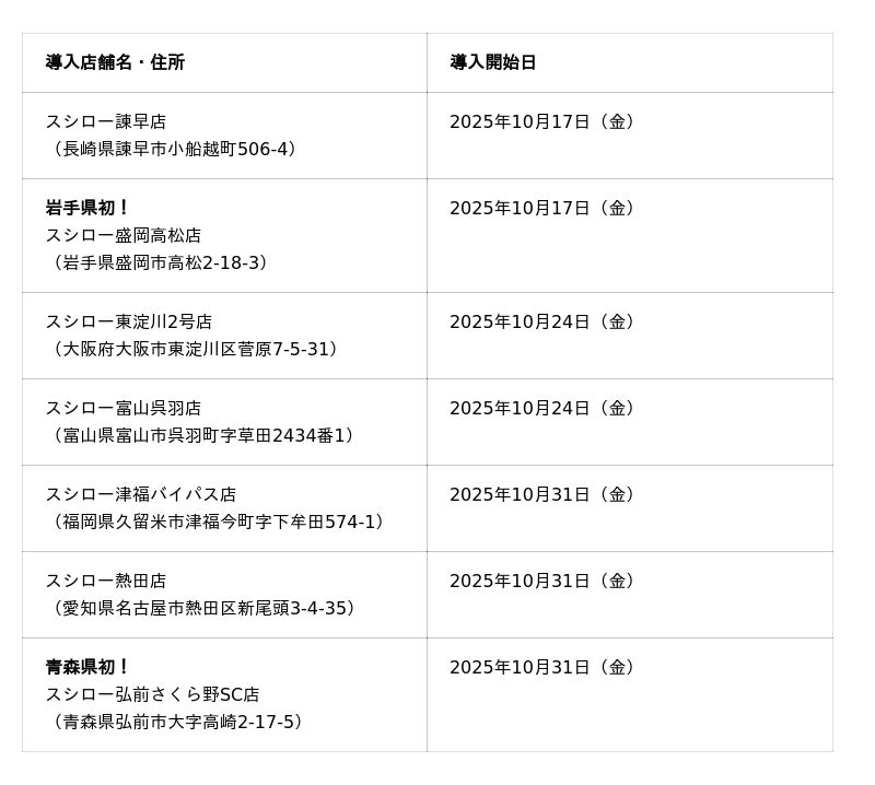 株式会社あきんどスシロー(本社:大阪府吹田市、代表取締役社長:新居 耕平)は、多くのお客さまからのご好評を受け、「デジタル スシロービジョン」、通称「デジロー」の導入を加速しております。県内初として、岩手県「盛岡高松店」、青森県「弘前さくら野SC店」に導入し、その他のエリアでも導入店舗を拡大いたします。