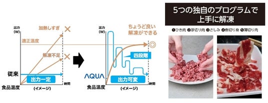 1. AQUA独自の『四ツ星解凍』に「薄切り肉モード」が追加搭載