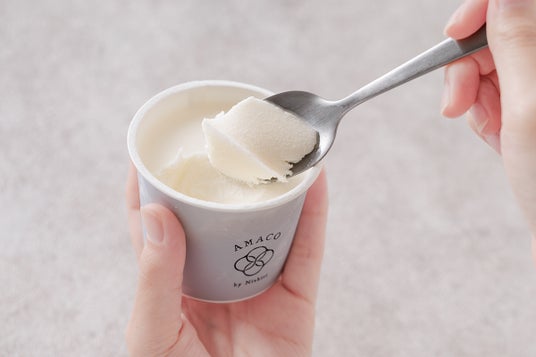 「乳酸発酵甘麹gelato」は、「乳酸発酵甘麹AMACO」のやさしい甘さと発酵の風味を活かし、濃厚でありながらもさっぱりとした後味が特徴。発酵のちからを取り入れた、からだにうれしいスイーツです。