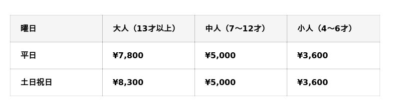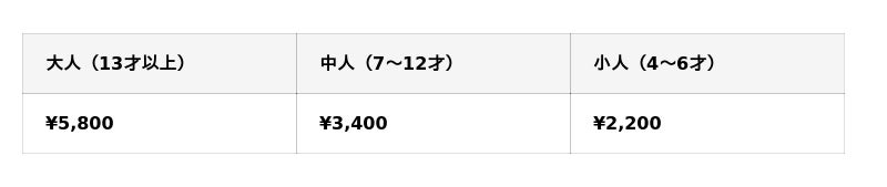 ※3才以下は無料です。