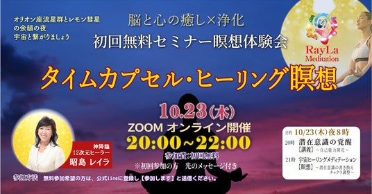 10/23(木)【初回無料】定期セミナー&瞑想|RayLa 脳と心の癒し×浄化×『タイムカプセルヒーリング瞑想』開催