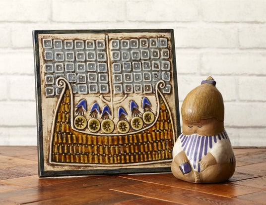 左):陶板(バイキング)(1967年~86年)(約22.5×22.5cm) 66,000円 <2点限り>