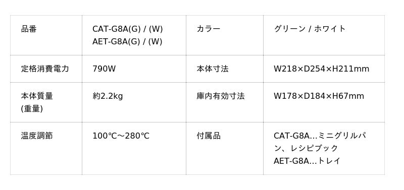■便利なミニグリルパン付き(CAT-G8Aのみ)