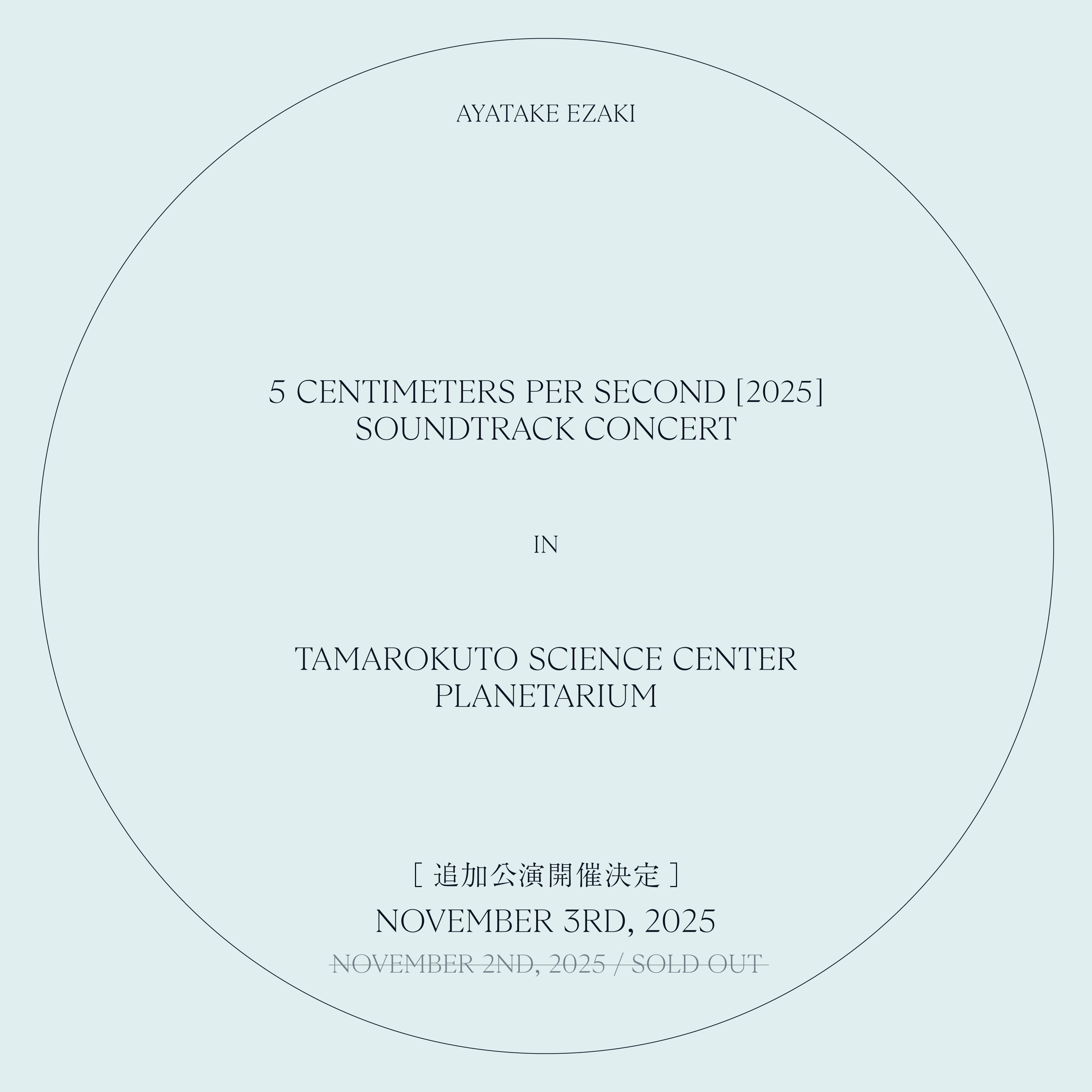 この公演は、本作の楽曲のみで構成される初のコンサートとなる。会場は多摩六都科学館プラネタリウムで、直径27.5mのドームに映し出される1億4000万個の星々を眺めながら、江崎文武の生演奏を楽しむことができる。