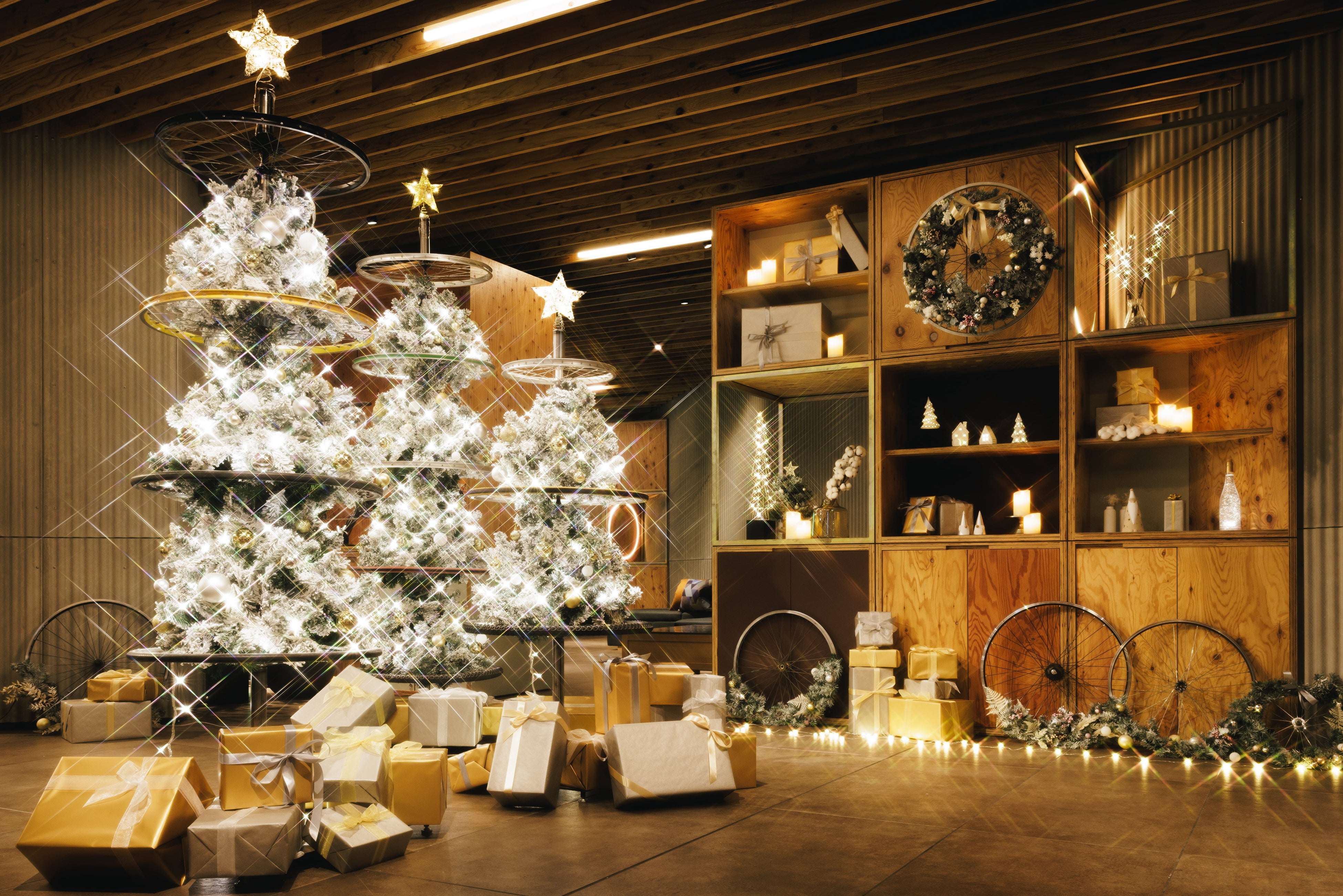 星野リゾート唯一の自転車を楽しむホテル「BEB5土浦 by 星野リゾート(ベブ)」は2025年12月1日~25日の期間、廃棄予定のホイールやタイヤでエコロジカルなクリスマス「BEB アップCYCLEクリスマス」を開催します。今年も自転車をこいで靴下をつくる「チャリックス」を期間限定で楽しめます。廃棄する予定だった自転車のホイールやタイヤを使用したクリスマスツリー「アップCYCLEツリー」も登場し、パブリックスペース「TAMARIBA(タマリバ)」が自転車をテーマにしたクリスマス仕様の空間に変身します。普段のクリスマスとはひと味違う体験や装飾がクリスマスムードを盛り上げます。