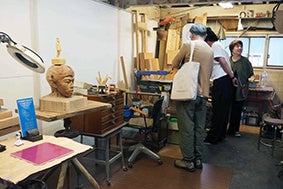 使わなくなった画材・道具の配布、作品やグッズ販売のほか、技術的な相談等もできる交流スポット