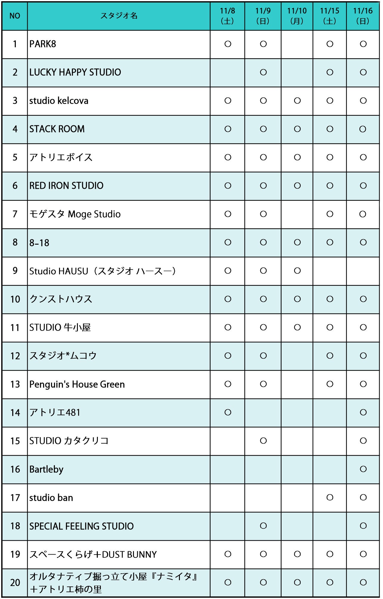 【参加スタジオ】全20スタジオ(所属アーティスト104人)
