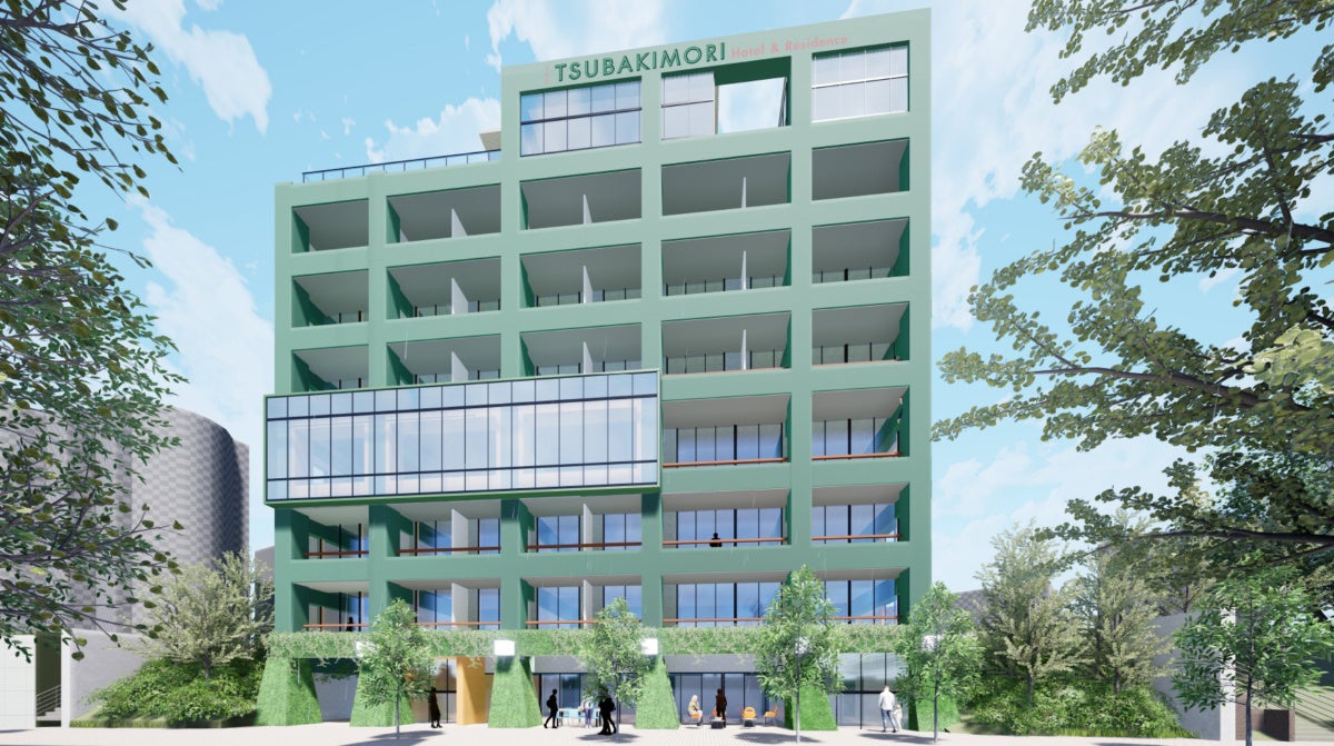 THE TSUBAKIMORI Hotel & Residence外観パース。