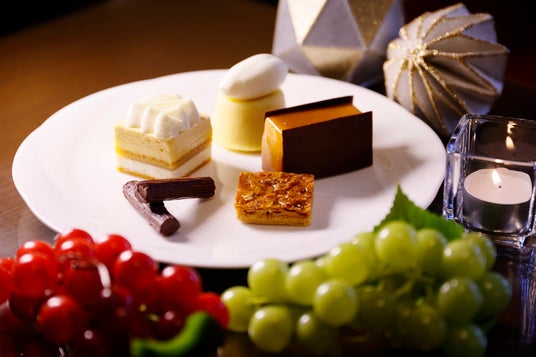 セイボリーはご夕食としてもお召し上がりいただける冷製と温製の2プレートをご用意いたします。冷製プレートは「奈良漬けクリームチーズタルト」や「ポークパテとピクルス」など多様な食感や軽やかな味わいを楽しめる4品が食欲をそそり、食事の始まりを華やかに演出します。温製プレートでは、ポルチーニ茸の芳醇な香りとサーモンの旨味が融合した「サーモンとポルチーニのショートパスタ」や柿の葉がほのかに香る「牛フィレ肉のステーキ 柿の葉仕立て」など、秋の深まりを感じる一皿を取り揃えました。