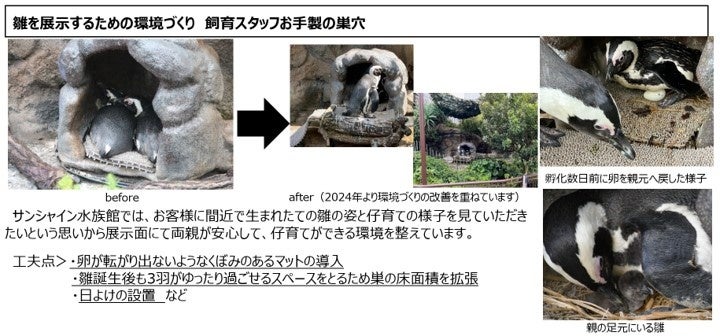 生まれたての赤ちゃんの姿と仔育ての様子が間近で観察できる!サンシャイン水族館「草原のペンギン」水槽にて ※鳥インフルエンザの流行により展示を休止する可能性がございます。