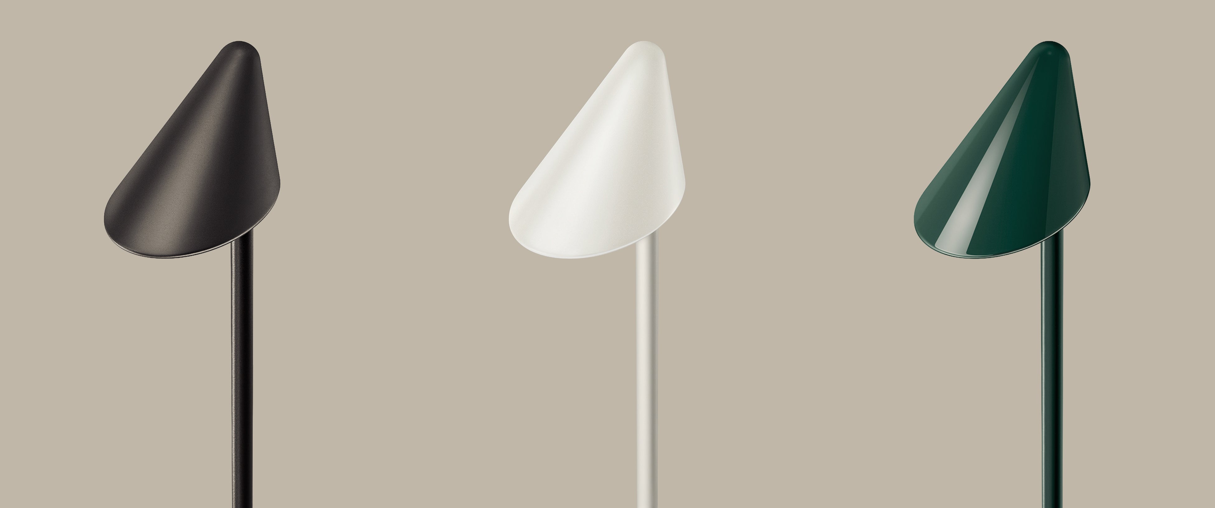 ラインナップは、タイムレスなシルエットのデスクライトと、H1100mmのスタンドライトの2種をご用意しました。スタンドはソファの背面に置けば読書する手元だけを、ダイニングテーブル脇では卓の中心だけをそっと照らし、会話と余白を生む環境を整えます。どちらも軽やかに持ち運べるポータブル設計で、周囲の輝度を整え、 デジタルデバイスとも静かに調和します。カラーパレットは絹のような白、 鋳肌を思わせるマットブラック、鮮やかなグリーンの3色を展開。それぞれに、精密な工業技術にクラフトの質感が息づく独自の仕上げを施しました。
