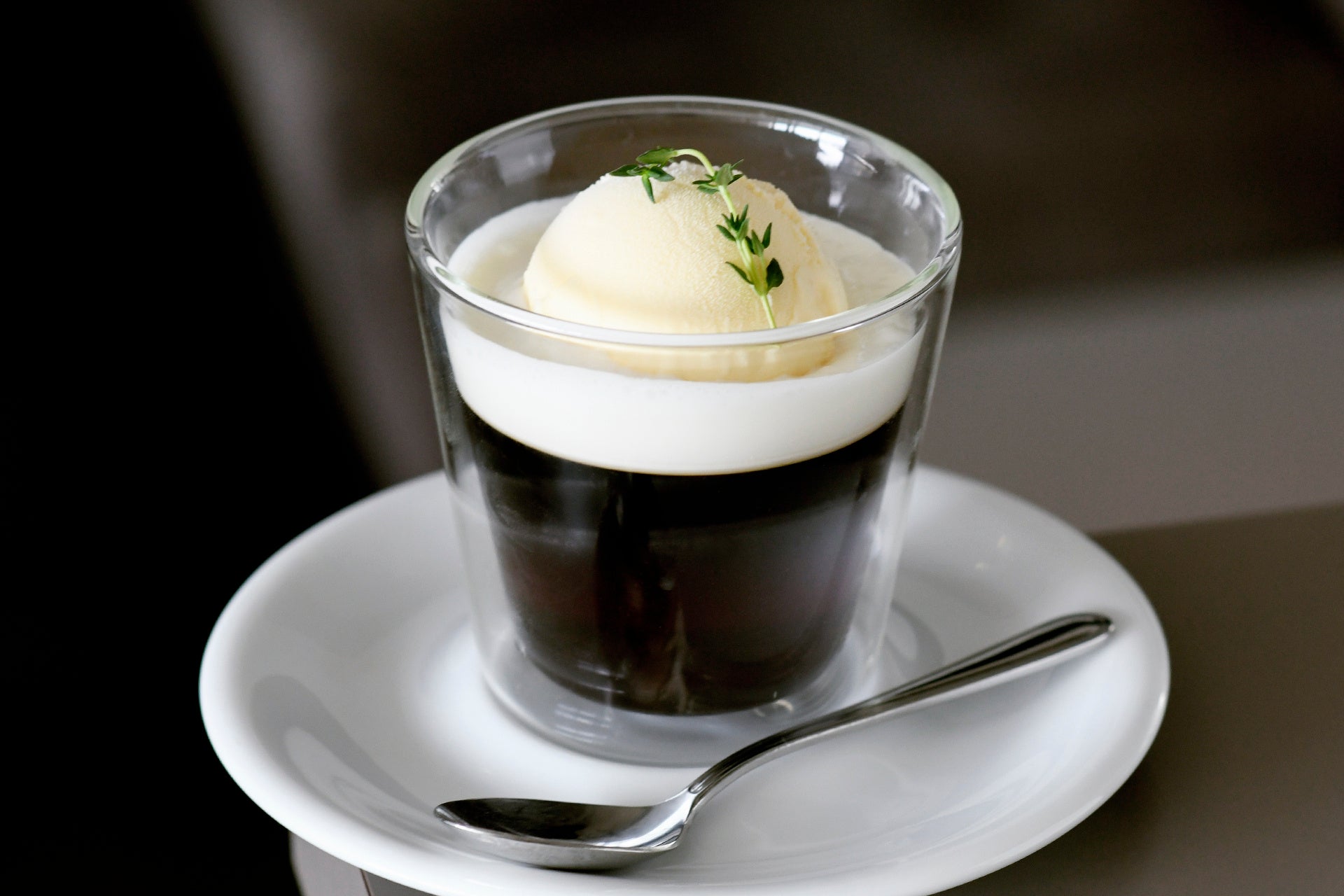 水素焙煎コーヒーで作った、苦みとコクのある自家製コーヒーゼリーもご用意いたしました。やわらかなホイップ・バニラアイスとご一緒にお召し上がりください。