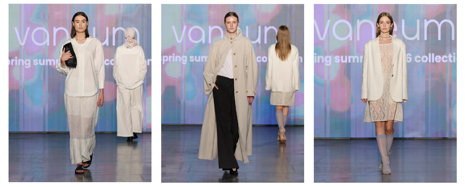 Show当日の準備をしている時から本番までの間も様々な思いが沸き上がり、感傷に浸っておりましたが、様々な思いのある洋服に、スタイルアップしたモデルさんが着てくださったとき、ランウェイを歩いてくださっている時にはようやくここまでこれたのだと思いながらも、次々モデルさんが出ていく中で終わりが近づく寂しさも感じました。