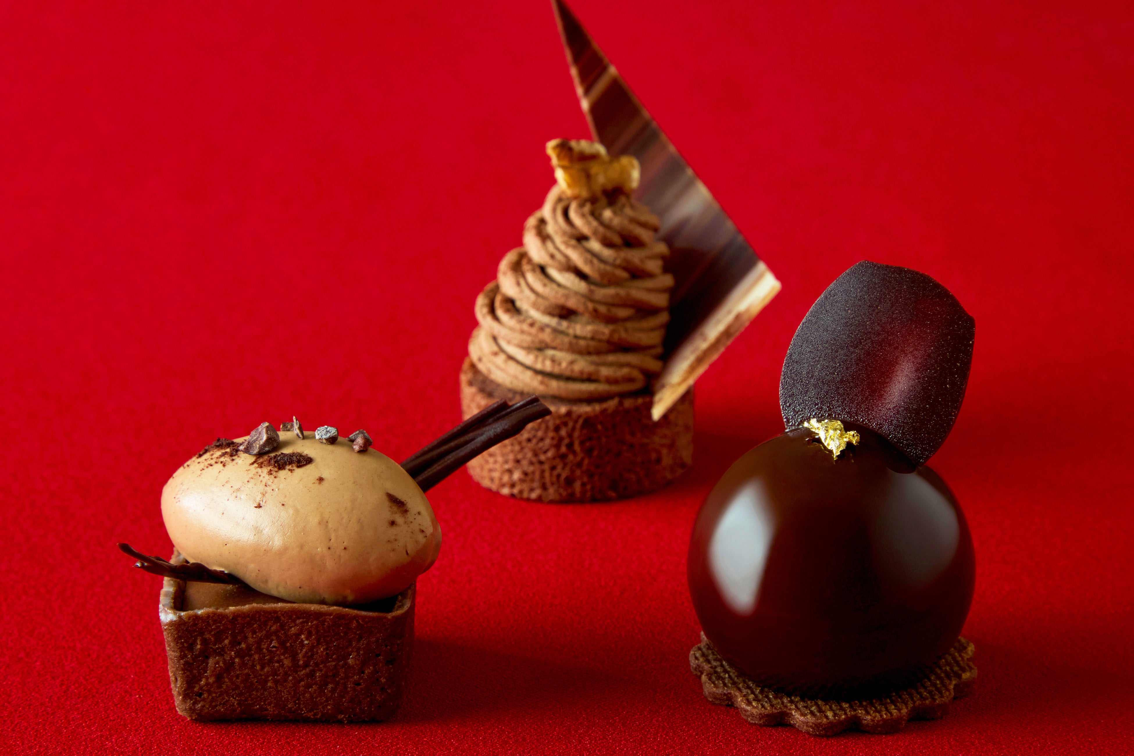 左から チョコレートミニタルト、チョコレートモンブラン、チョコレートムース