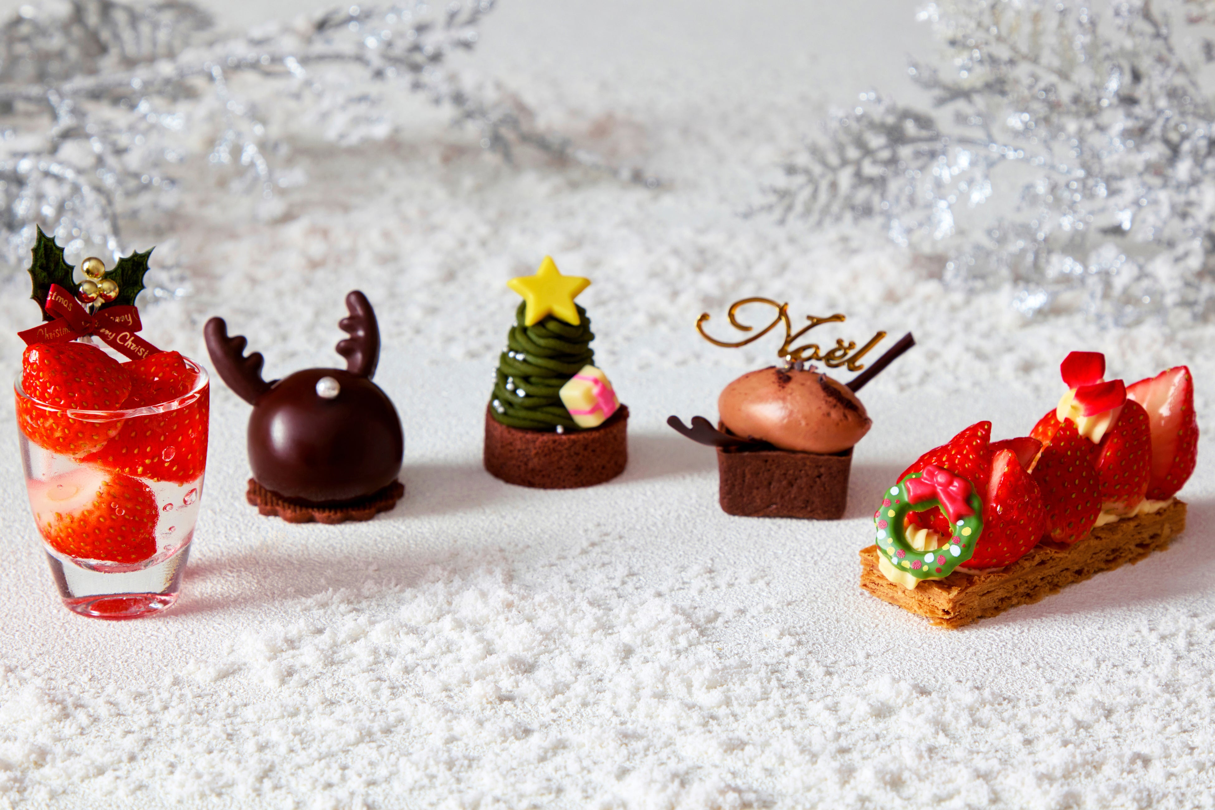 いちごのマカロン / チョコレートムース / チョコレートモンブラン(クリスマスver.はツリーモンブランに変更) / いちごグラスジュレ