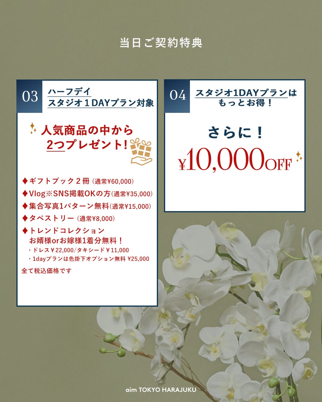 ・トレンドコレクション1着分無料(※スタジオ1DAYプランの場合は色掛下無料)