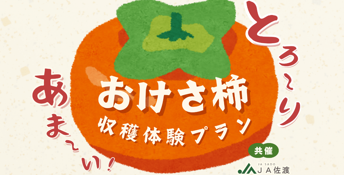 佐渡汽船株式会社(所在地:新潟県佐渡市、代表取締役: 尾渡英生、以下「佐渡汽船」)は、佐渡の特産品、「おけさ柿」の収穫体験ができるプランを販売開始しました。今年はおけさ柿の収穫体験と往復乗船代(カーフェリー2等)がセットになった個人型プランに加え、収穫体験後に人気観光地をめぐるバスツアーも発売。JA佐渡と連携した農・食体験コンテンツを通じて、佐渡島の魅力をぜひご体感ください。