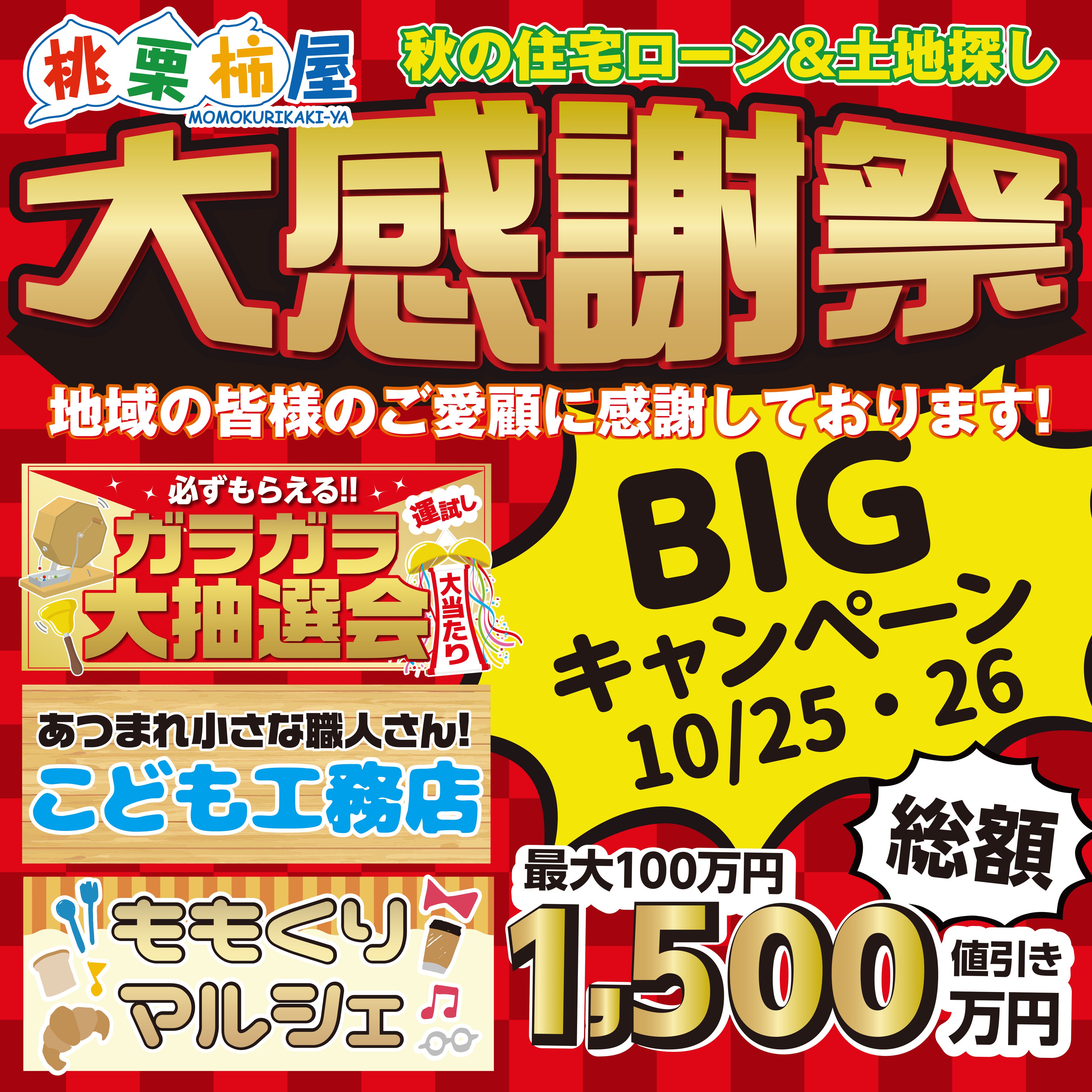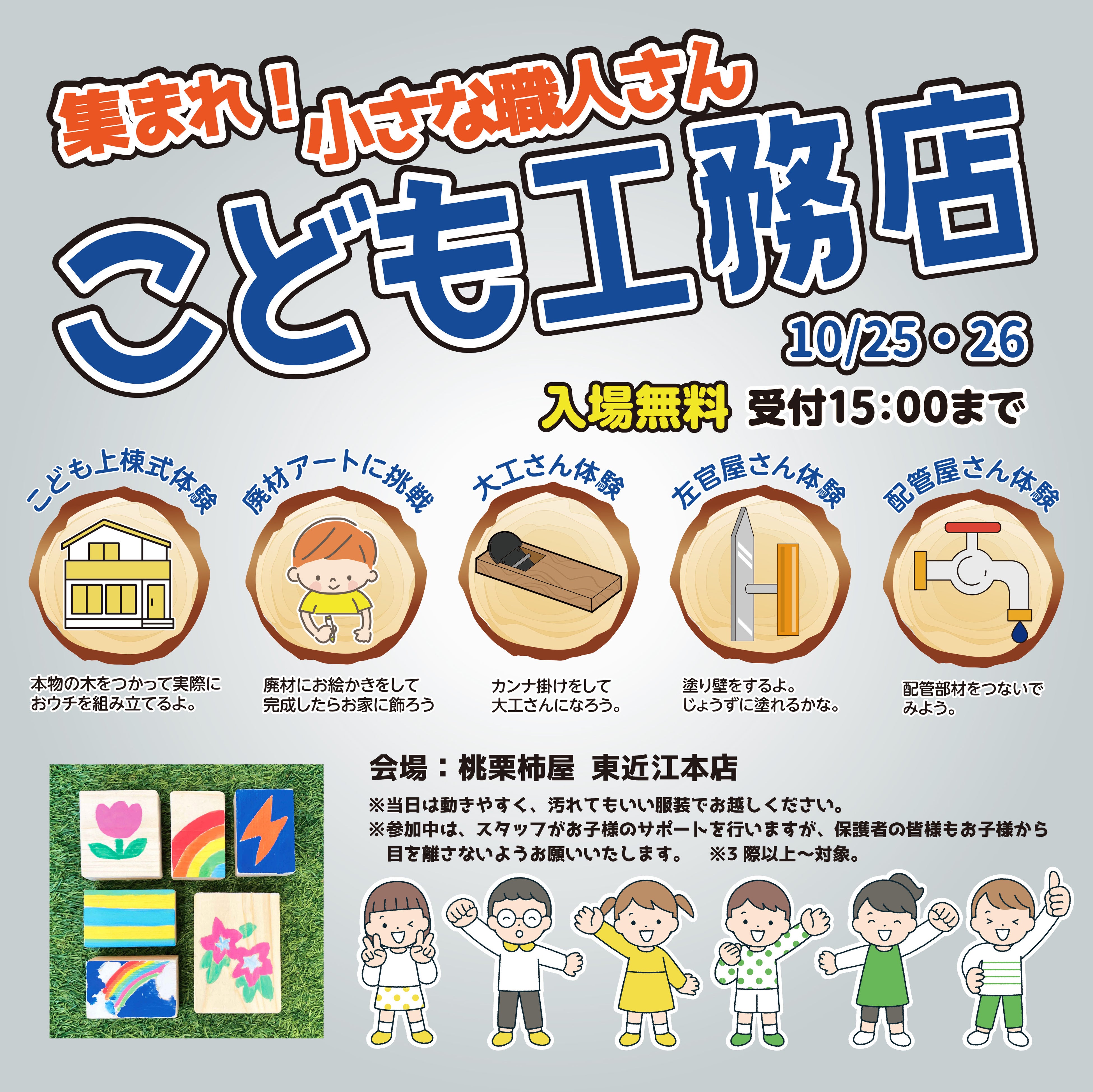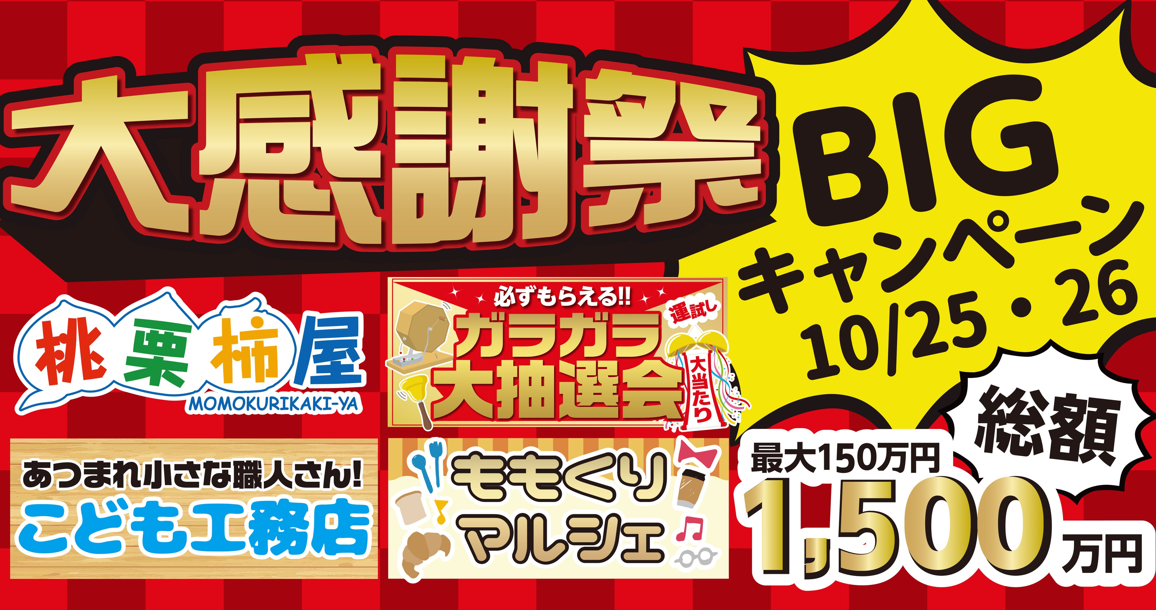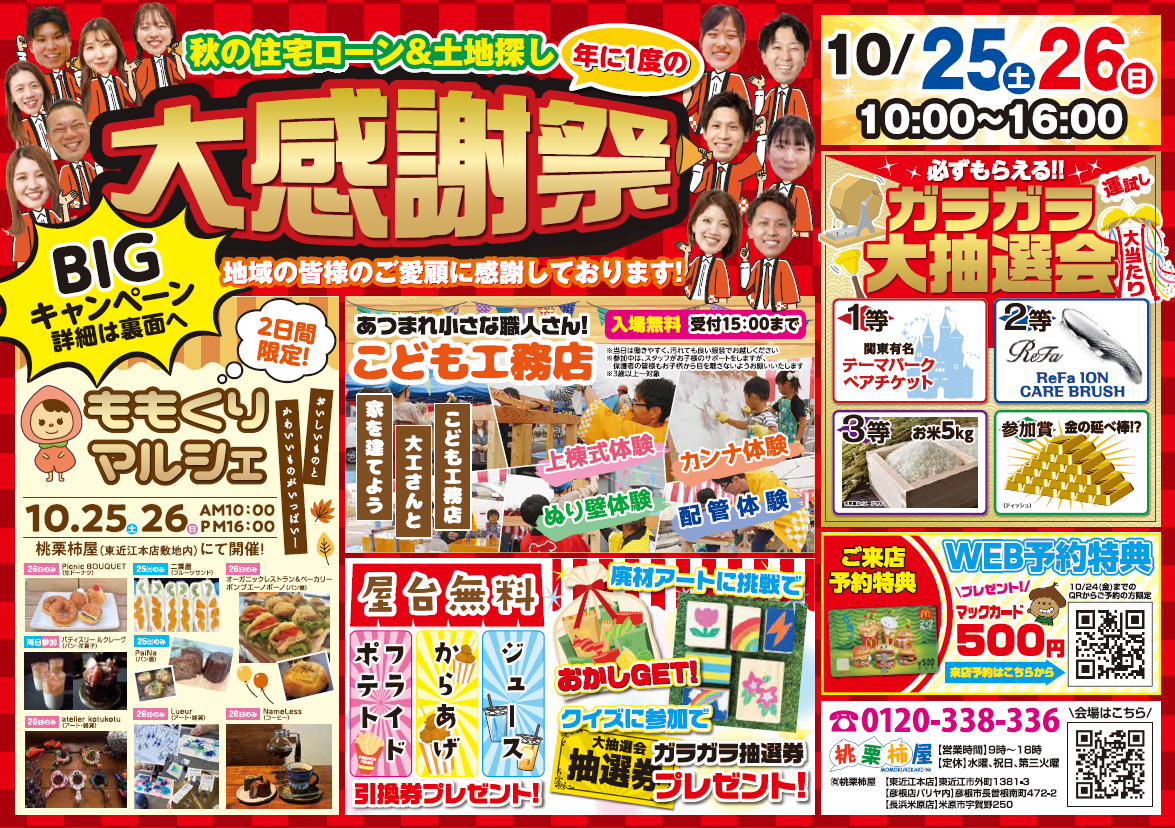親子で楽しむ職業体験『こども工務店』も開催。桃栗柿屋の大感謝祭 "10月25日・26日の2日間" 地域の皆様のご愛顧に感謝!!