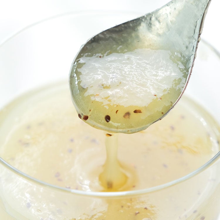 ホルモンバランスの変化でからだが敏感になりやすい時期にも心地よく味わえるよう、果実の繊維をほどよく残し、まろやかなのどごしに仕上げました。
