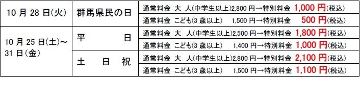 10月28日当日は入場料が1,000円ポッキリで超おトク!2025年10月25日(土)~2025年10月31日(金)