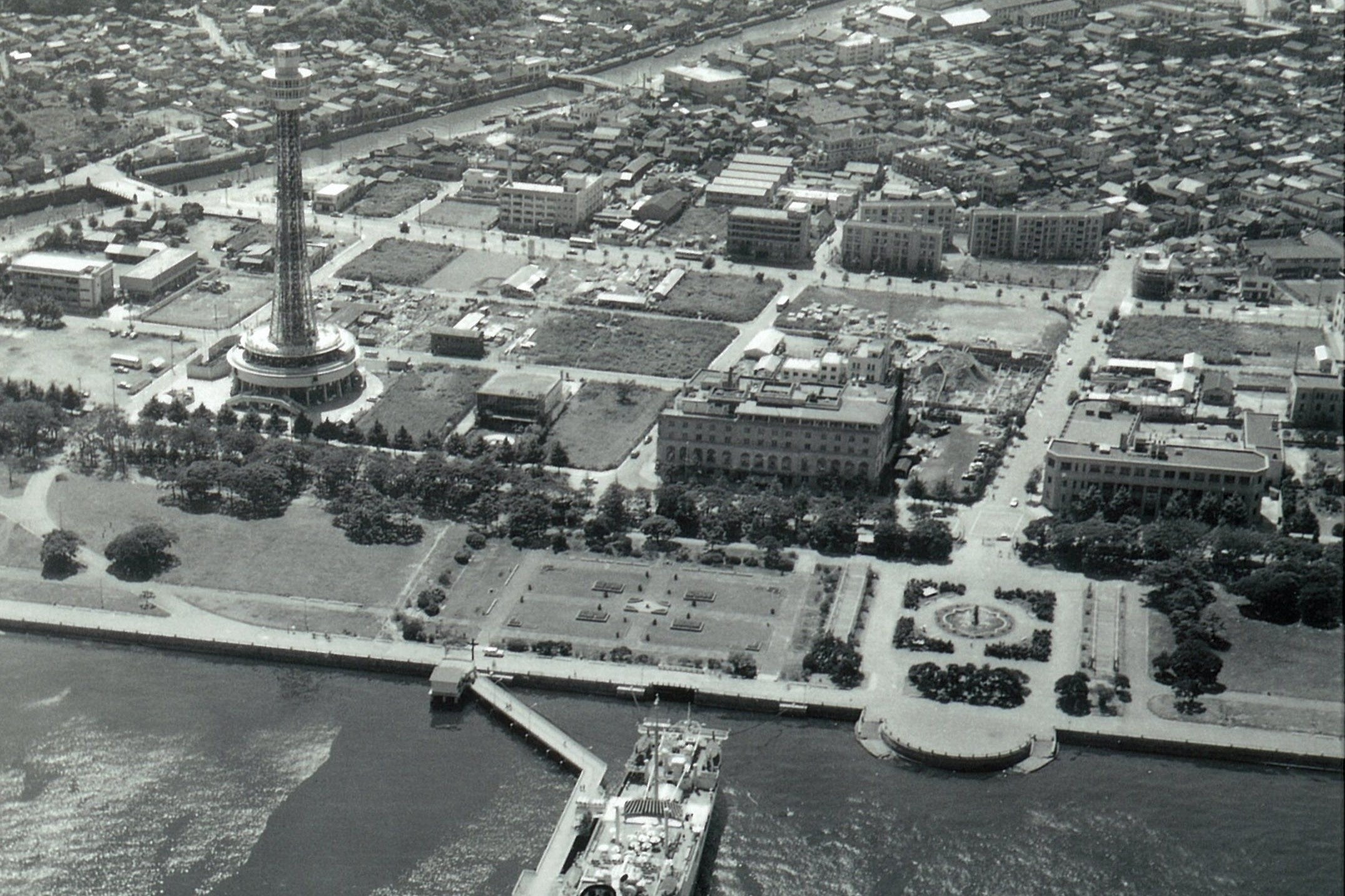 ▲1961年1月 航空写真(山手方面より撮影)