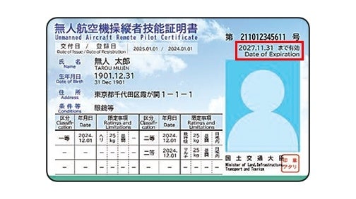 ドローン国家資格(技能証明)の有効期限は3年間です。