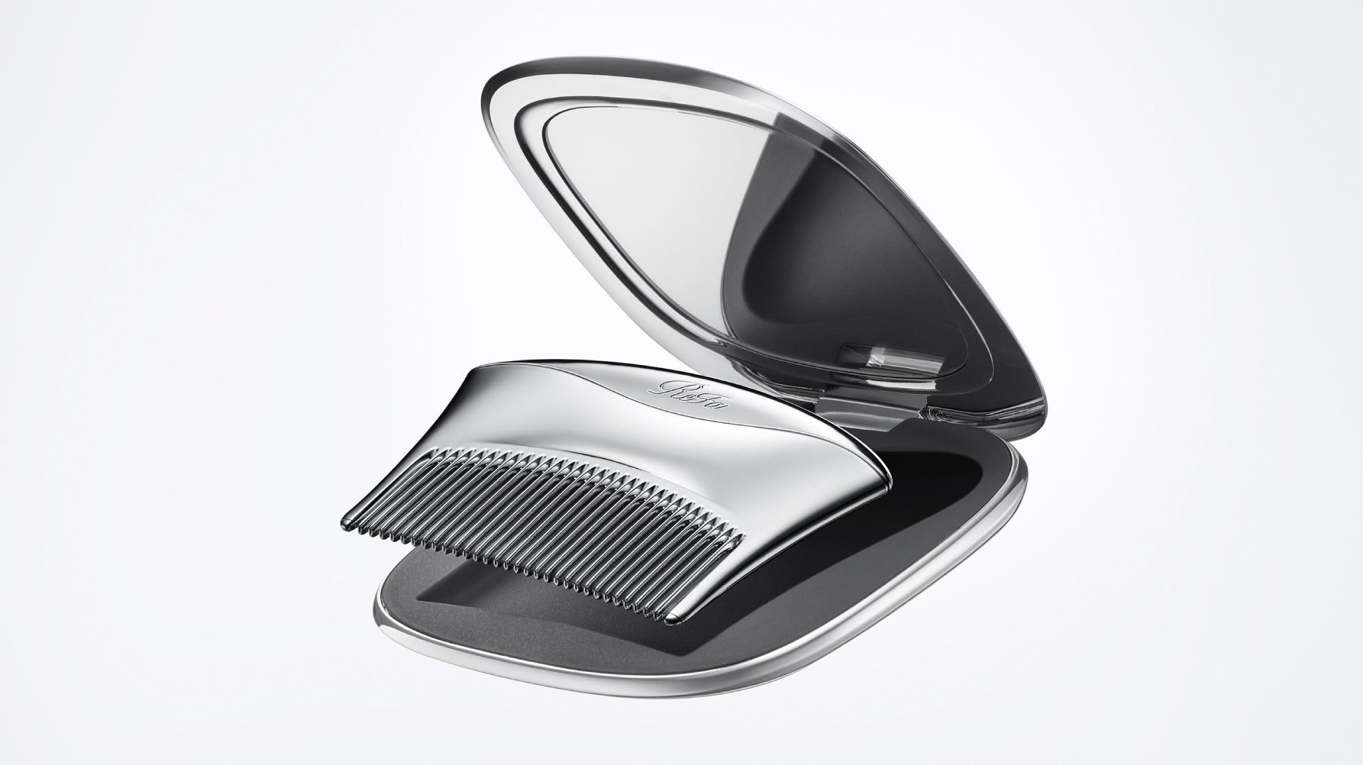 開くたび、洗練を極めたフォルムが、髪を整える姿にまで美しさを引き立てるコンパクトが登場。