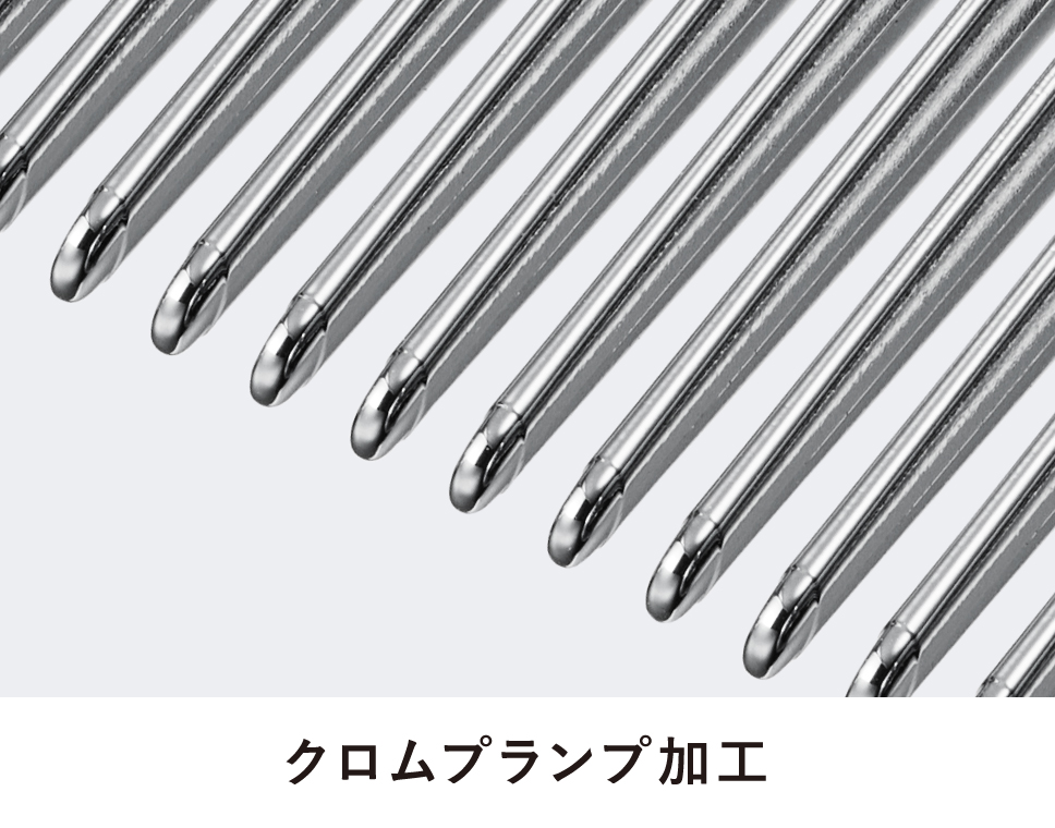 表面は特殊なクロムコーティングでぽってりと厚みを持たせ、なめらかに。髪との摩擦による負担を抑え、高い導電性で静電気を効率よく拡散させます。