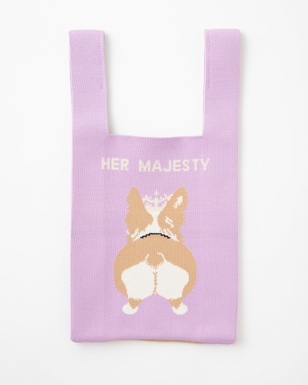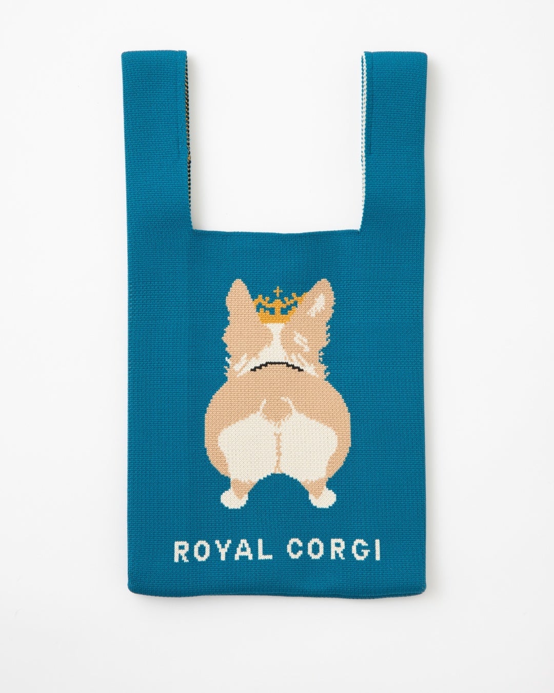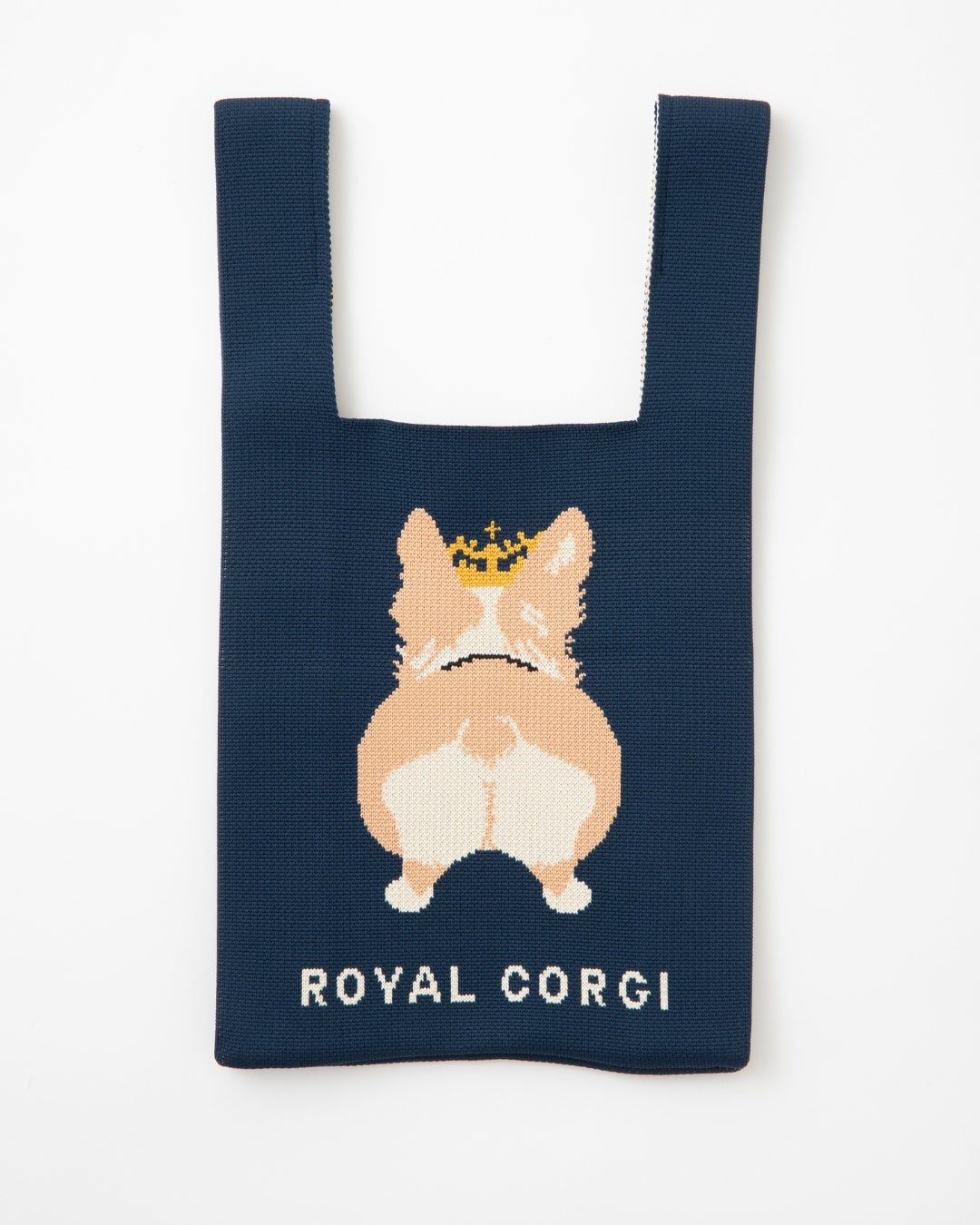 愛嬌たっぷりな笑顔ともっちりおしりが裏面までキュートなコーギーデザインニットバッグが登場