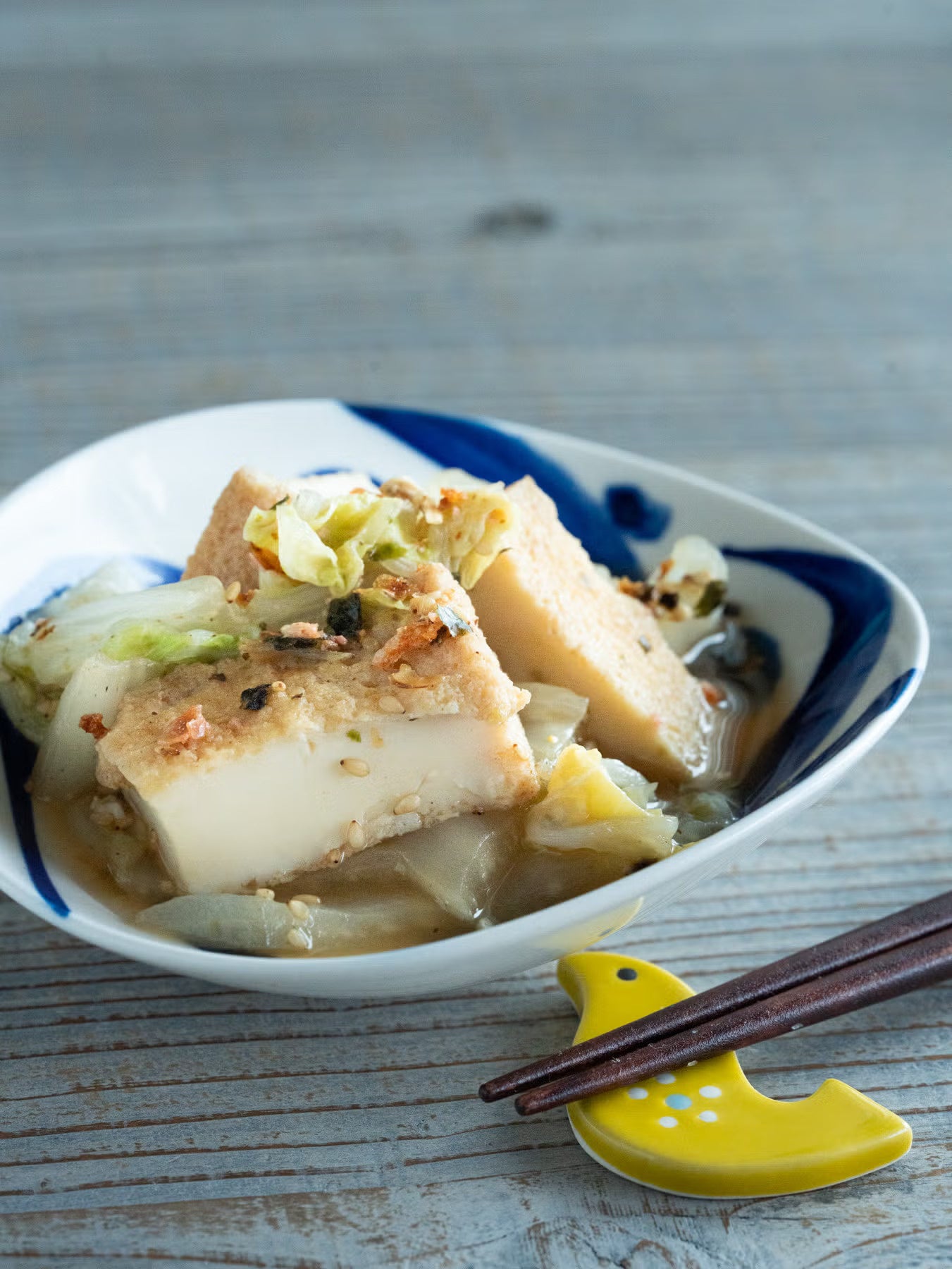 白菜と厚揚げと小魚ふりかけの煮浸し