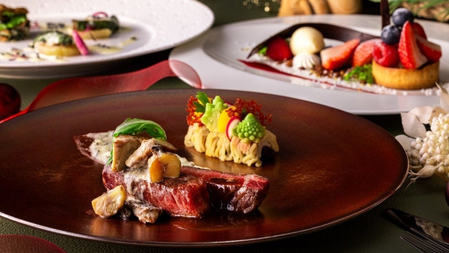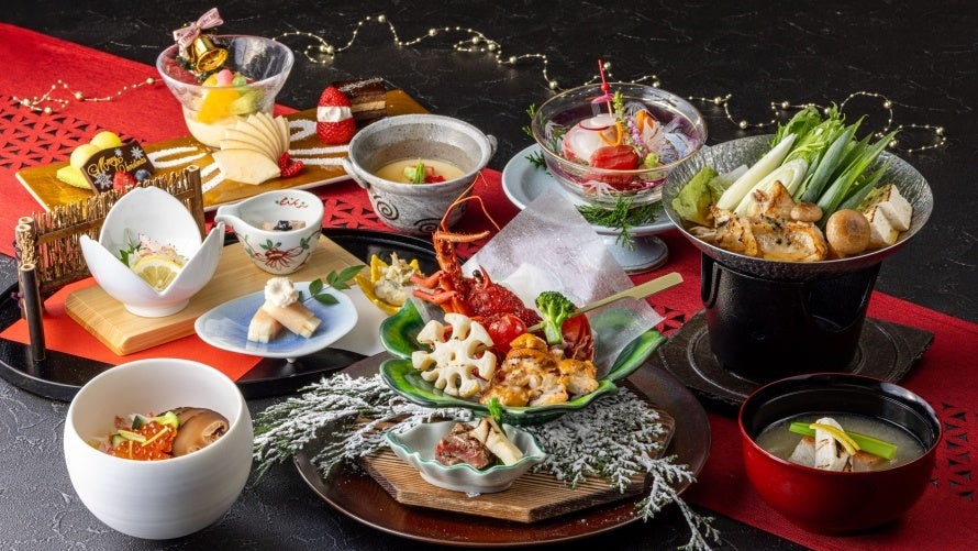その他、「ブッフェダイニング ケッヘル」(2F)では、"牛フィレ肉とフォアグラのウェリントン風"など、コース料理のメインで提供されるようなクオリティのメニューをお好きなだけご堪能いただける特別なブッフェメニュー、「日本料理 羽衣」(40F)では美しい見た目にこだわったクリスマス限定の会席料理をご提供いたします。