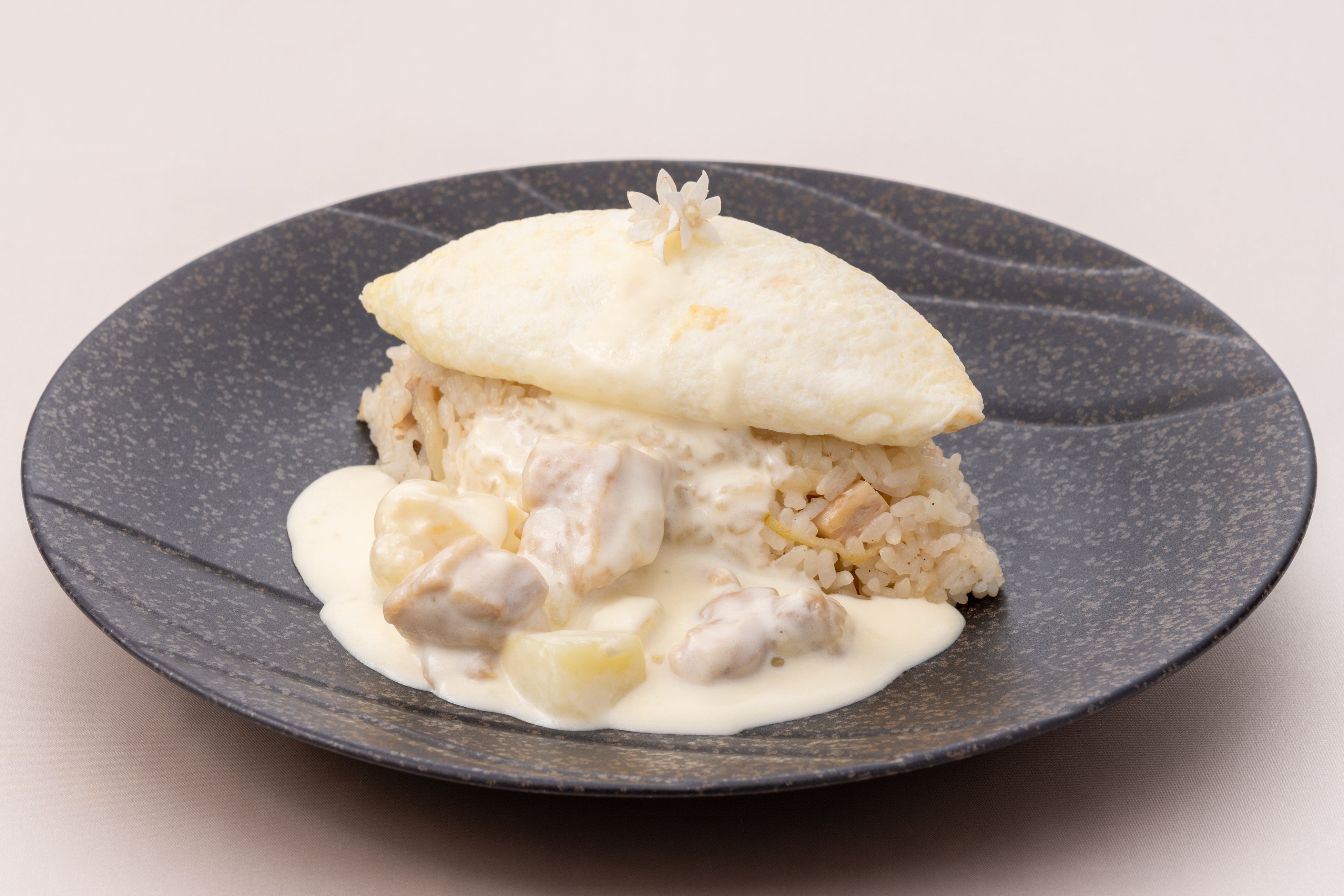 当ホテル館内5つのレストランでご提供するコラボレーションメニューは、各店の特色を活かしてご用意。1階「ダイニング ルオーレ」ではアラカルトメニューとして自家製の白いケチャップとクリーミーなホワイトソースが調和した「白いオムライス」、6階「日本料理 鯉城」ではお昼の会席の一品、6階「寿司 旬菜 酒仙」ではアラカルトの一品、33階「レストラン シャンボール」ではランチコースの一品としてご提供いたします。また、33階「スカイダイニング リーガトップ」では、展覧会にてご鑑賞いただけるルノワール《胸に花を飾る少女》からインスパイアされたカクテルが登場。少女の可憐さや柔らかな印象を表現しました。