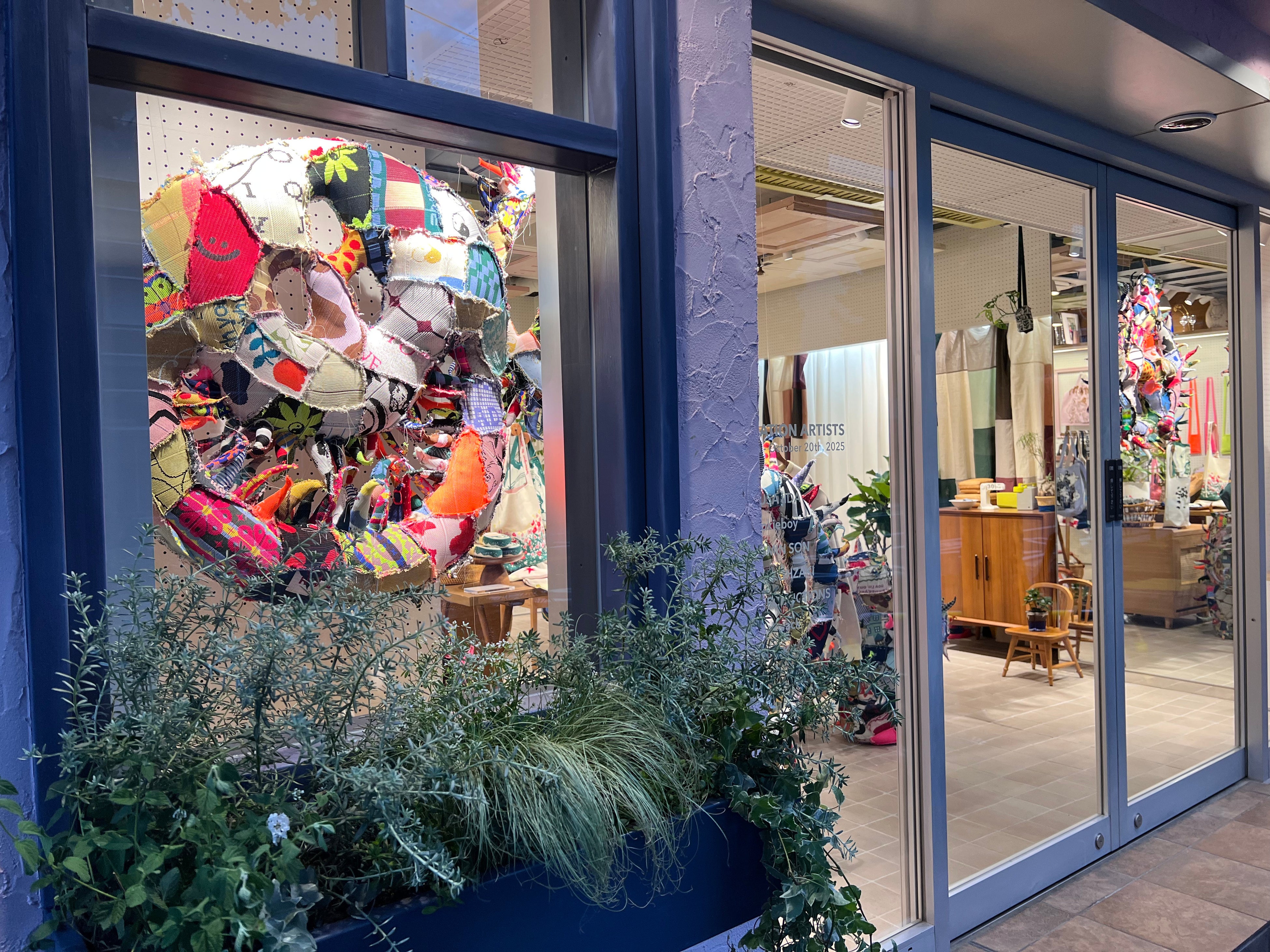 また、店内入口にはKNT365のアップサイクル素材を用いて制作された、アーティストKUNIO KOHZAKIさんによるインスタレーション作品を設置。