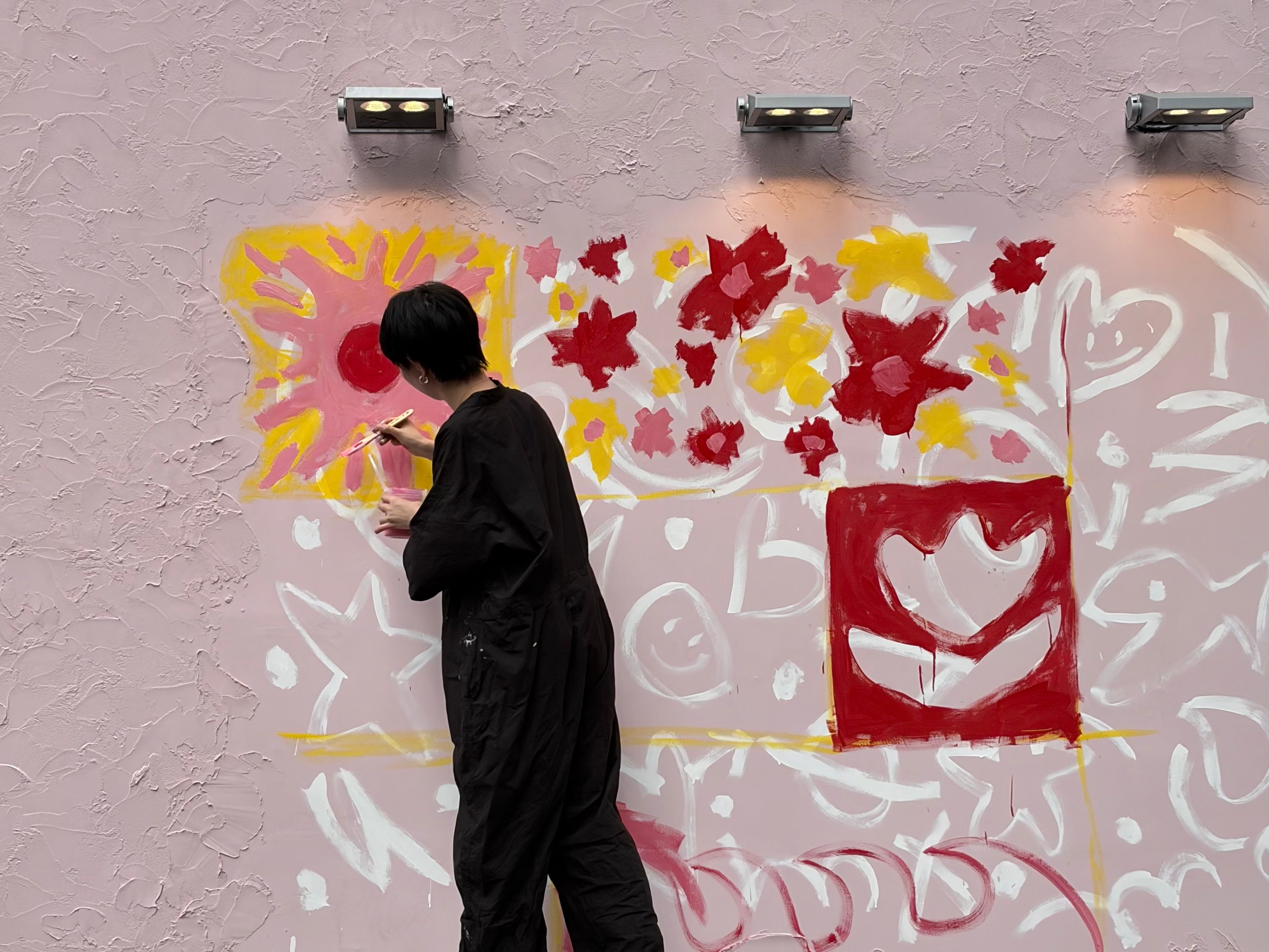 壁面に設置された巨大キャンバスに、アンバサダーを務めるアーティスト YUUKI(@_whoisyuuki_)がライブアートパフォーマンスを行いました。