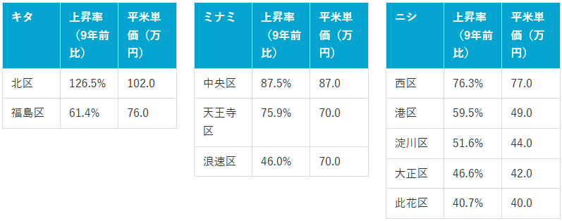大阪3エリアの価格動向 - キタ・ミナミ・ニシの個性と比較