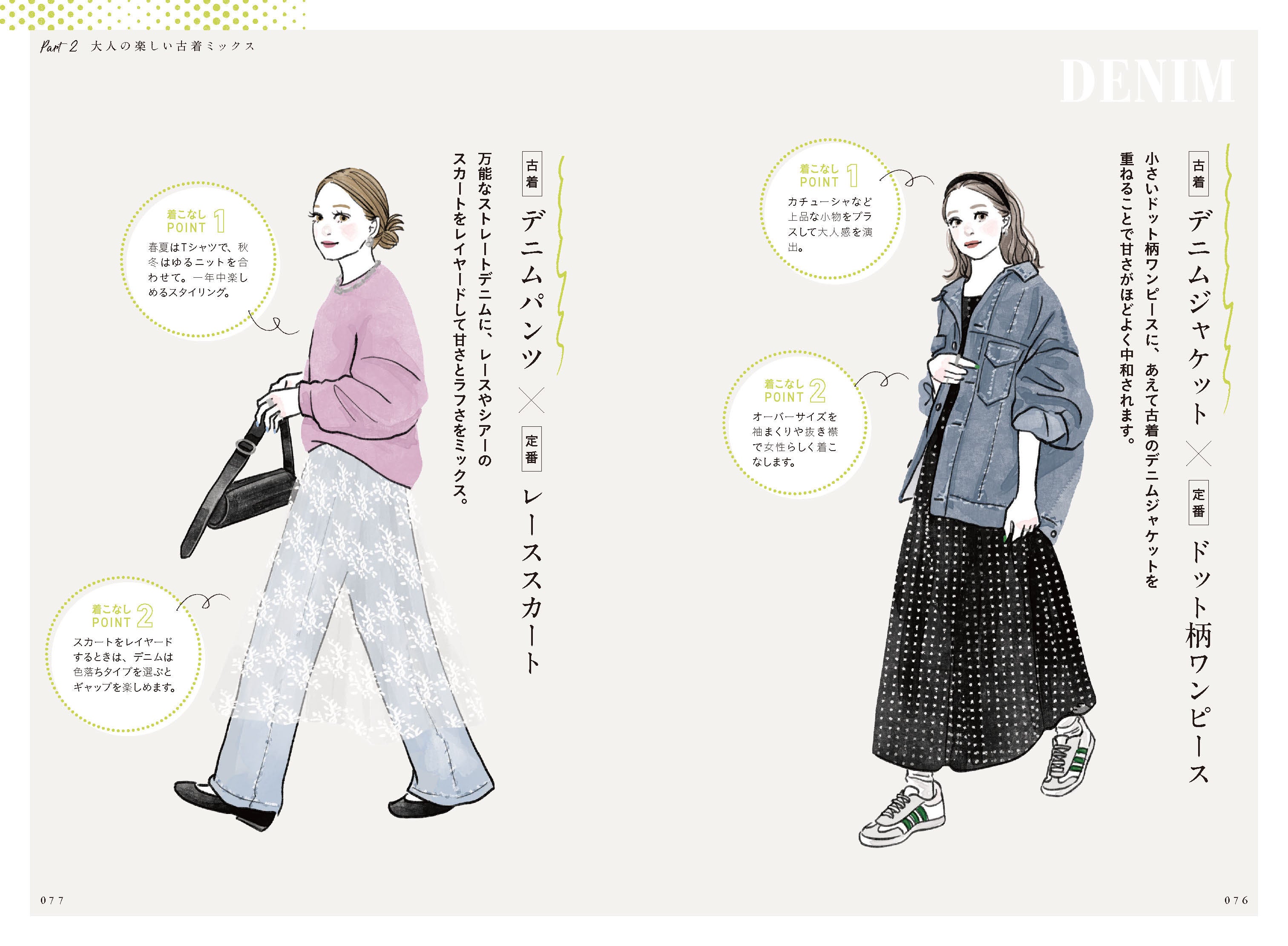 本書では、古着の魅力や初心者でも着こなしやすいおすすめアイテム、カフェ女子会、オフィス、デート、旅行といったシーン別のコーディネートアイデアなど、大人女性のおしゃれの悩みを解消し、こなれ感を出すためのコツを具体的にご紹介。さらに、古着を長く楽しむためのメンテナンス法や、お気に入りの1着の探しかたまで、「古着」を楽しむための情報をたっぷり詰め込んだ1冊となっています。