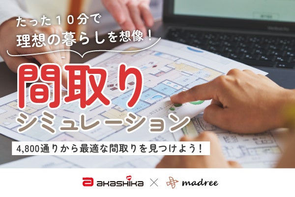 インスタで人気の「madree」に登録されている間取りプランを使い、ご希望に合わせた間取りを最短10分でシミュレーション。土地のご検討中の方も、間取りだけ見たい方もご利用いただけます。