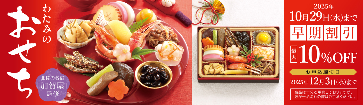 大好評販売中!「わたみのおせち」まもなく早期割引受付終了!最大10%引きの予約受付は10月29日(水)まで!