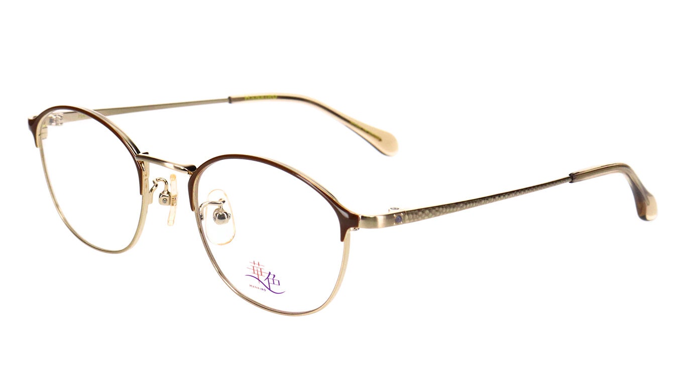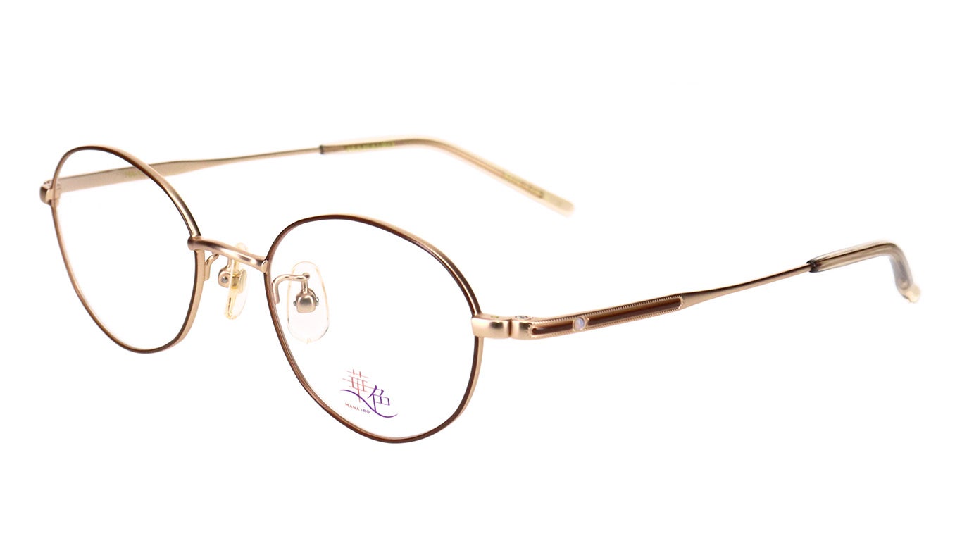 女性フレームで人気が高まっているブロータイプ(ボストン型)を採用。ブローのラインを極力細くし、リム線と自然に繋がる華奢なデザインにより、女性らしく使いやすいのが特徴です。テンプルには槌目模様を施し、合口近くに一粒の半貴石を配置しました。繊細な槌目模様が柔らかい輝きを放ちます。