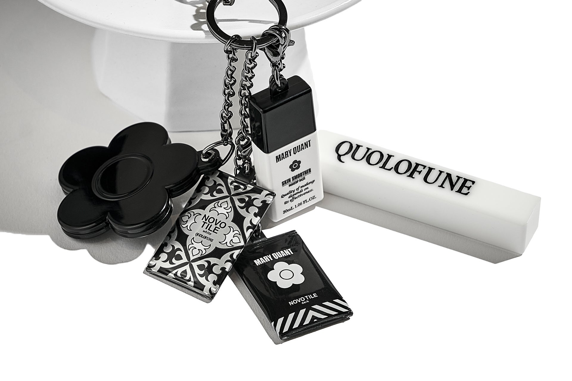 「黒船」と「MARY QUANT」の世界観が融合したコラボレーションチャーム。「MARY QUANT」のブランドのアイコンであるデイジーや、「黒船」のロゴをあしらったチャームは、モノトーンの洗練されたデザインです。