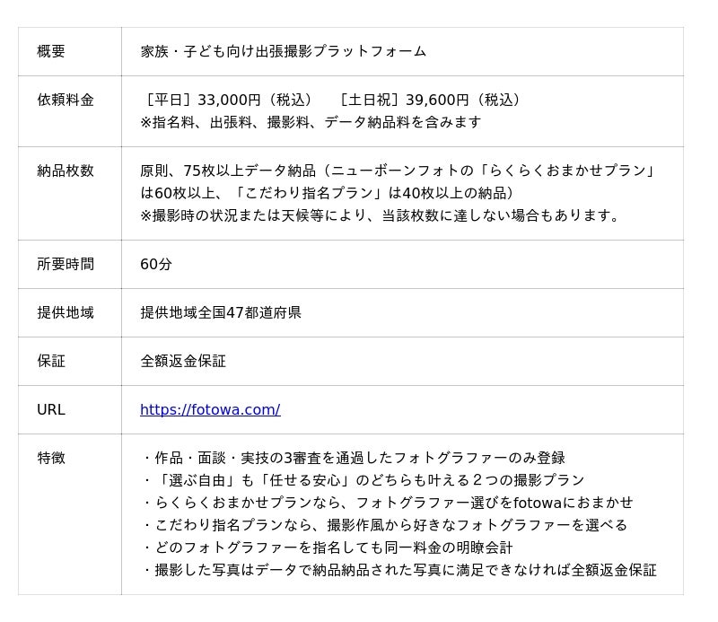 ■ 家族・子ども向け出張撮影プラットフォーム「fotowa」について