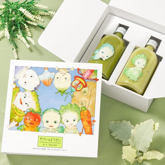 天野喜孝氏原作『やさいのようせい N.Y. SALAD』×「酒日向。」 野菜のお酒が"飾っておきたくなる"ギフト箱入りのセットで新登場