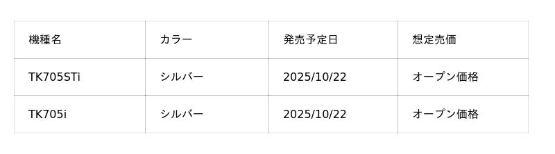 「TK705STi」、「TK705i」製品仕様表