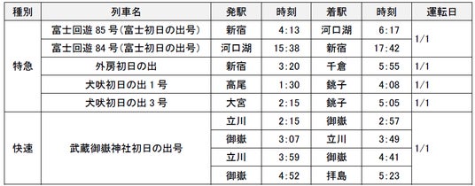 初詣や初日の出観賞に便利な臨時列車を運転します。