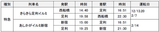 きらきら足利イルミ・あしかがイルミ新宿◆「あしかがフラワーパーク」へのお出かけに便利な臨時列車を運転します。日本三大イルミネーションにも選ばれた、心躍る幻想的な世界をお楽しみください。