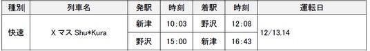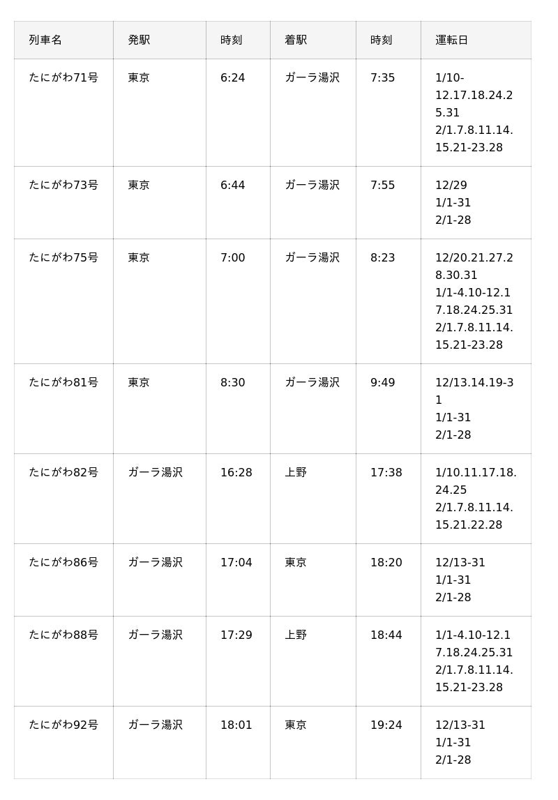 ※臨時列車以外にも定期列車「たにがわ」の高崎・越後湯沢~ガーラ湯沢駅間の延長運転も行います。